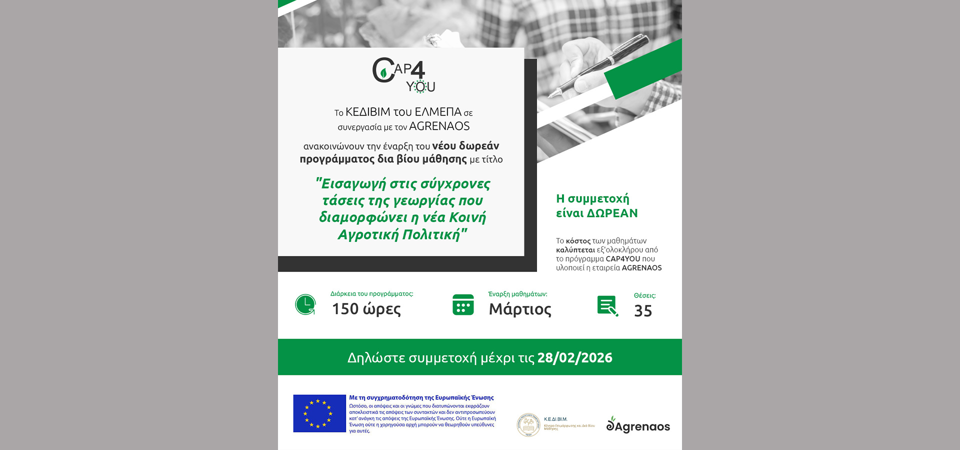 Πρόγραμμα δια βίου μάθησης «Εισαγωγή στις σύγχρονες τάσεις της γεωργίας που διαμορφώνει η νέα Κοινή Αγροτική Πολιτική»